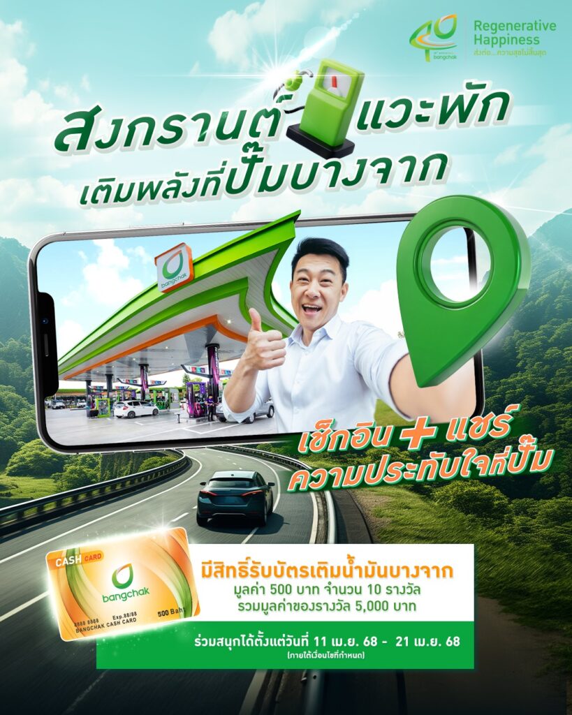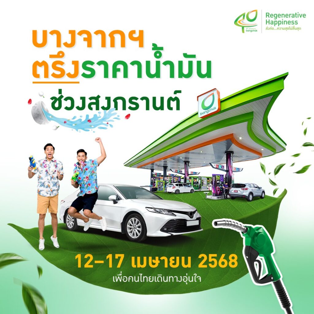 นายเสรี อนุพันธนันท์ รองกรรมการผู้จัดการใหญ่ กลุ่มธุรกิจการตลาด บริษัท บางจาก คอร์ปอเรชั่น จำกัด (มหาชน) เปิดเผยว่า ช่วงเทศกาลสงกรานต์ปีนี้ บางจากฯ จะตรึงราคาน้ำมันไม่ปรับขึ้นระหว่างวันที่ 12 – 17 เมษายน 2568 แม้ว่าราคาน้ำมันในตลาดโลกจะปรับขึ้น แต่ถ้าราคาน้ำมันในตลาดโลกปรับลดลง บางจากฯ จะปรับลดลงด้วย นอกจากนั้น ได้เตรียมพร้อมสถานีบริการน้ำมันไว้ต้อนรับและร่วมดูแลทุกการเดินทางของประชาชนที่กลับภูมิลำเนาเยี่ยมญาติมิตรและท่องเที่ยวพักผ่อน ทั้งผลิตภัณฑ์น้ำมันคุณภาพสูง กาแฟอินทนิล EV Charger (Quick Charge) ธุรกิจเสริม ห้องน้ำสะอาด เพื่อรองรับทุกความต้องการ เติมเต็มความสุขให้คนทุกวัยตามแนวคิด “Greenovative Destination” ดังนี้