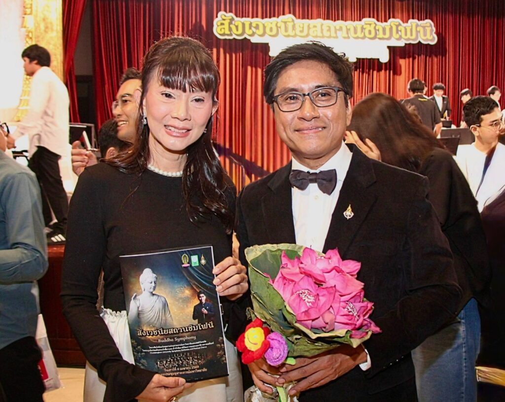 ด้าน คุณรัชดา สัทธาพงษ์ ประธานกรรมการบริษัท โกลบอลพลัส อินเตอร์เทนเมนท์ เอเจนซี จำกัด ในฐานะผู้ร่วมสนับสนุนในการมอบของที่ระลึก กล่าวว่า“เรารู้สึกยินดีและภาคภูมิใจอย่างยิ่งที่ได้ร่วมสนับสนุนการแสดง ‘สังเวชนียสถานซิมโฟนี (Buddha Symphony)’ ซึ่งถือเป็นผลงานที่มีคุณค่าอย่างยิ่งต่อวงการศิลปะและวัฒนธรรมของไทย การนำเรื่องราวพุทธประวัติมาถ่ายทอดผ่านดนตรีในรูปแบบซิมโฟนี ไม่เพียงสะท้อนถึงความคิดสร้างสรรค์ แต่ยังเป็นการเชื่อมโยงศรัทธาเข้ากับศิลปะร่วมสมัยได้อย่างลงตัว เราเชื่อว่าผลงานลักษณะนี้จะมีบทบาทสำคัญในการผลักดัน Soft Power ของไทย และสามารถต่อยอดสู่เวทีระดับนานาชาติได้ในอนาคต”
